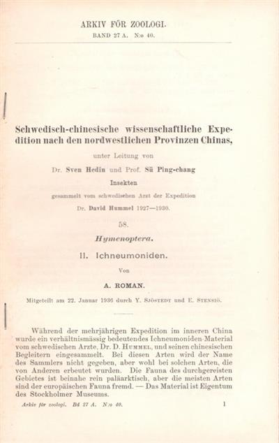 A collection of offprints on European and worldwide Ichneumonidae extracted from various journals. Text English or German