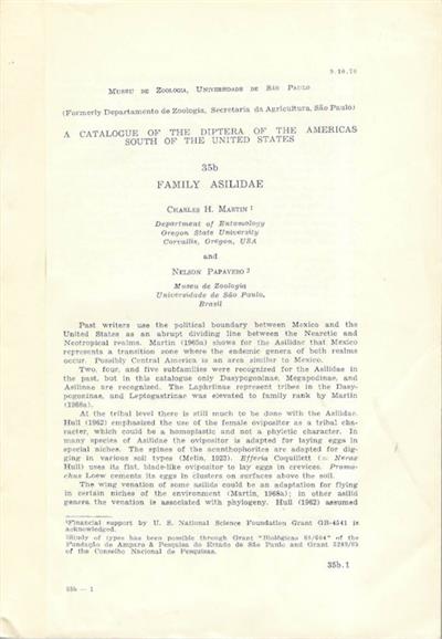 A Catalogue of the Diptera of the Americas south of the United States 35b: Family Asilidae