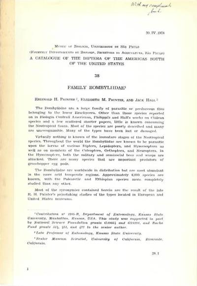 A Catalogue of the Diptera of the Americas south of the United States No. 38: Bombyliidae
