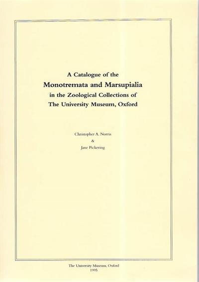 A Catalogue of the Monotremata and Marsupialia in the Zoological Collections of the University Museum, Oxford