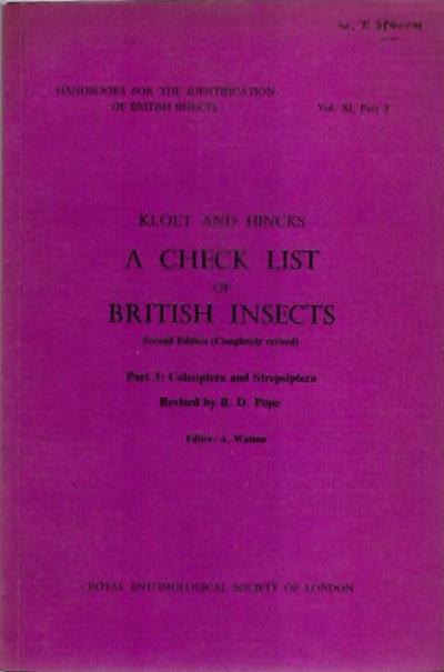 A Check List of British Insects Pt. 3: Coleoptera and Strepsiptera (Handbooks for the Identification of British Insects 11/3)