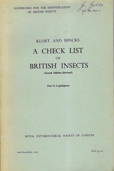 A Check List of British Insects. Part 2: Lepidoptera (Handbooks for the Identification of British Insects 11/2)