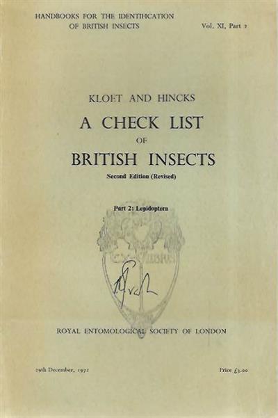A Check List of British Insects. Part 2: Lepidoptera (Handbooks for the Identification of British Insects 11/2)