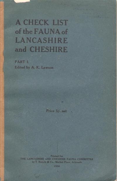 A Check List of the Fauna of Lancashire and Cheshire Pt. I