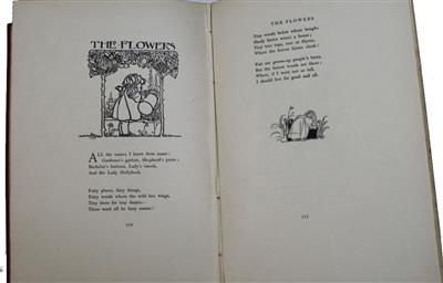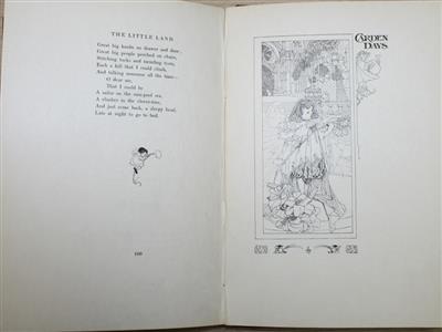Large paper copy of the first illustrated edition, of this beloved collection, one of the most celebrated works in children’s literature. Limited to 150 copies in the U.K. [and 100 copies in America]. This delightful collection of poems, a celebration of childhood, written from the point of view of a child, is considered to be one of the most influential children's works of the 19th century. The collection speaks to the themes of exploration, play, and the small joys that define youth. It includes some of Stevenson’s most famous poems, including 'The Land of Counterpane', 'My Shadow' and 'The Lamplighter'. This edition is copiously illustrated by over 100 charming pen and ink drawings by Charles Robinson (1870-1937) marking his debut as an illustrator of children's books. Robinson’s delicate and evocative drawings are a perfect complement to Stevenson’s lyrical verse, which captures the innocence, wonder, and imagination of childhood.