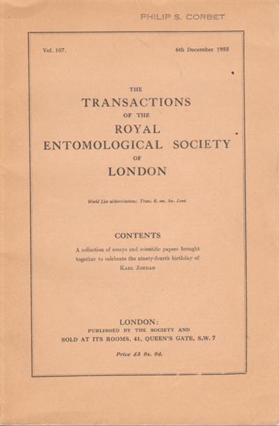 Transactions of the Royal Entomological Society, London, vol. 107. Includes: a biography by Miriam Rothschild; a bibliography; essays and contributions by many leading entomologists of the day in honour of Karl Jordan