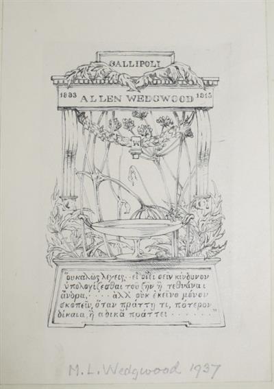 1910 vol. has a memorial book-plate for Allen Wedgwood (1893-1915), inscribed in pencil M.L. Wedgewood 1937. Mary Louisa Wedgwood (1854-1953) was an English botanist and collector who created a herbarium at Marlborough College, Oxford as a memorial to her son Allen, who died in the First World War at Gallipoli.