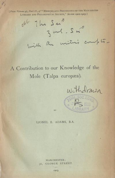 A Contribution to our Knowledge of the Mole (Talpa europaea)
