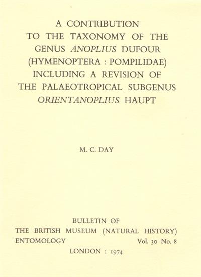 A Contribution to the Taxonomy of the Genus Anoplius Dufour (Hymenoptera: Pompilidae): Including a Revision of the Palaeotropical Subgenus Orientanoplius Haupt