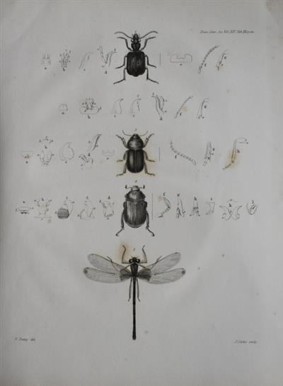 From the Trans. Linn. Soc., 14(1): 93-110. An interesting contribution to the study of analogy. Accompanying plate engraved by John Curtis.