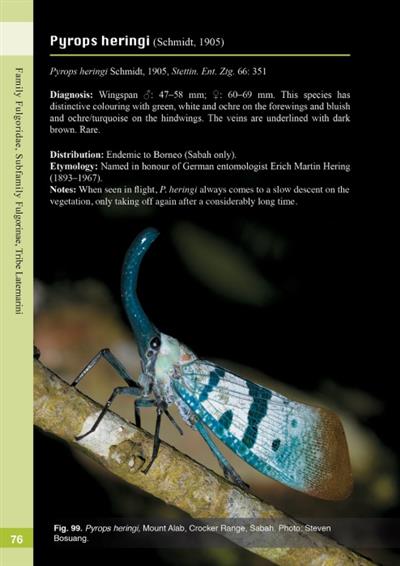 Borneo — one of the world’s most exciting biodiversity hotspots — is renowned for its spectacular species richness residing in evergreen tropical rain forests, home also to a myriad of insects, including the lanternflies. Thus far, just 34 taxa are known from Borneo which are classified in four subfamilies, viz., Lystrinae, Amyclinae, Aphaeninae and Fulgorinae. There are too few specialists working on lanternflies, and many more new species are expected to be discovered and described in the future, so this Guide draws attention to these fascinating insects in a timely way.
