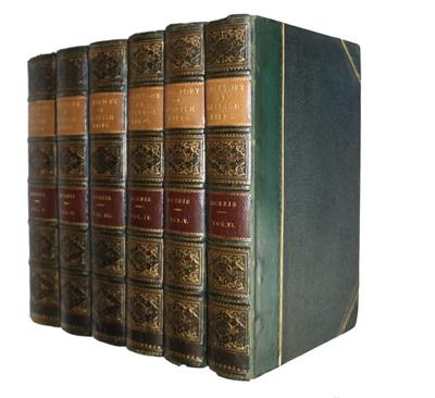 6 vols, roy. 8vo, cont. half calf, raised bands to spines, gilt tooling to compartments, lightly rubbed, leather title pieces, marbled endpapers and edges. Some minor wear/chipping to head/foot of a few spines. Foxing to endpapers and preliminaries, elswhere, scattered foxing, mostly light. Very good, attactive set.