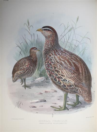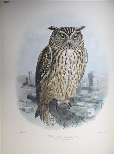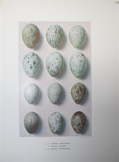 Provenance: Birds, Vol. I with bookplate of H.E. Dresser; Vol. I-VIII with bookplate of Lewis Balfour Bequest, British Ornithologists Union; Eggs with armorial bookplate of Hanbury Barclay, with his heraldic emblems also in gilt to lower spine compartments.