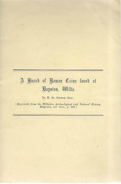 Reprinted from Wiltshire Arachaeological and Natural History Magazine Vol. XXXV. Describes coins that formed part of a hoard found at Baynton about the year 1830. Harold St George Gray (1872-1963) was a distinguished British archaeologist.