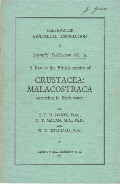 A Key to the British Species of Crustacea: Malacostraca occurring in Freshwater: with notes on their Ecology and Distribution
