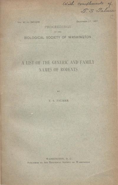 A List of the Generic and Family Names of Rodents