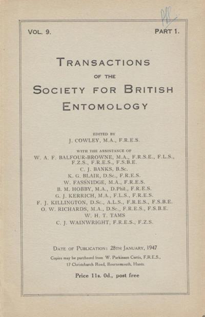 From Transactions of the Society for British Entomology Vol. 9(1). Second of two parts; this part includes Geometridae, Sphingidae, Notodontidae, and several other smaller families of macromoth, with notes on occurrence and lists of localities recorded. Scarce local list.