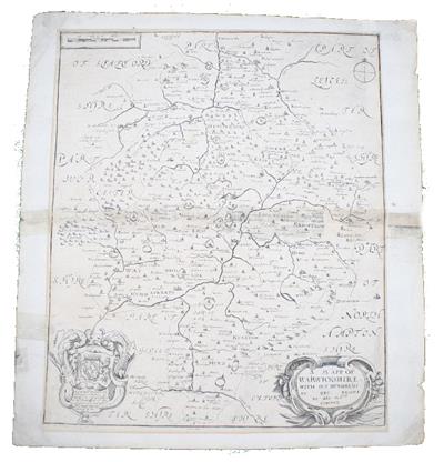 Original copper engraved printed map from Britannia: or, a geographical description of the Kingdoms of England, Scotland and Ireland. Dedication to Francis Smith, 2nd Viscount Carrington (c. 1621-1701).