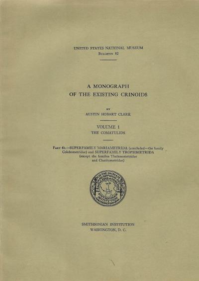 A Monograph of the Existing Crinoids: Vol. 1. The Comatulids. Part 4b- Superfamily Mariametrida (concluded the family Colobometridae) and Superfamily Tropiometrida (except the families Thalassometridae and Charitometridae)