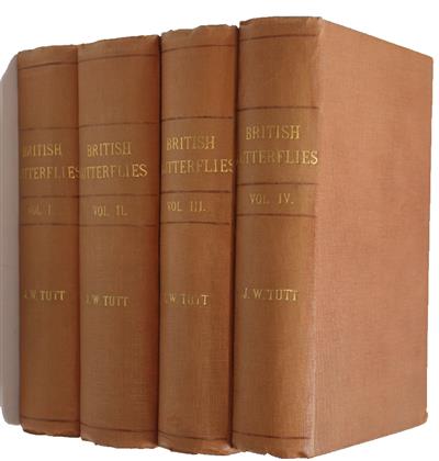 The four volumes on butterflies (complete) from Tutt's A Natural History of British Lepidoptera. (The complete work comprised Vol. 1-5 (Moths) and Vol. 8-11 (Butterflies) [Vol. 6+7 were not published]). The four volumes on butterflies were also issued separately, as here, with the variant title, A Natural History of the British Butterflies. Vol. I-IV.