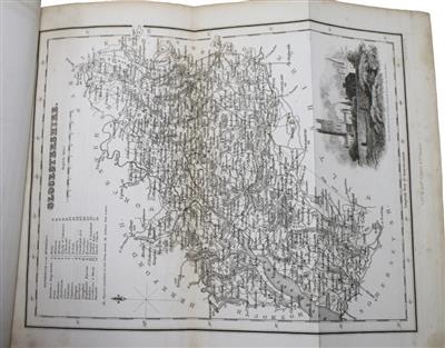 Rebound in recent green cloth, gilt rules to spines. Large map with some neat repairs at the folds, a few edge tears, one tear to central fold (without loss), a few stains at the edges. The county map for Essex is torn with loss of the outer half, otherwise all maps in good condition. Ex-lib.: small neat ink stamps to verso of maps and title pages, and final text pages to each volume