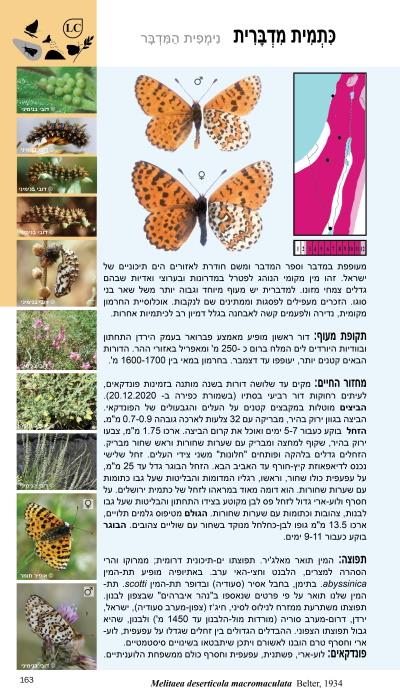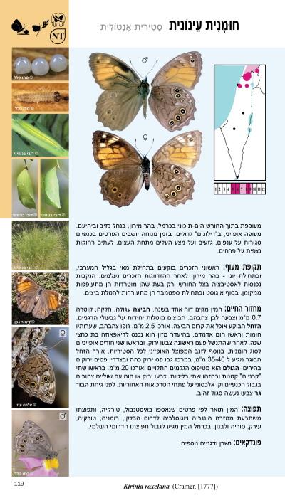 Text Hebrew. Updated and revised edition. 157 species and subspecies of the Israeli Butterflies are illustrated life size except the small lycaenides that are enlarged. Distribution, Conservation status (accrd. The Israeli Red List of Butterflies (in prep.)). Are presented with 1979 colour photographs by 78 photographers.