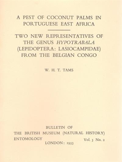 A Pest of Coconut Palms in Portuguese East Africa / Two New Reprentatives of the Genus Hypotrabala (Lepidoptera: Lasiocampidae) from the Belgian Congo