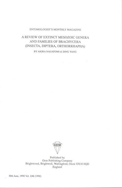A Review of Extinct Mesozoic Genera and Families of Brachycera (Insecta, Diptera, Orthorrhapha)