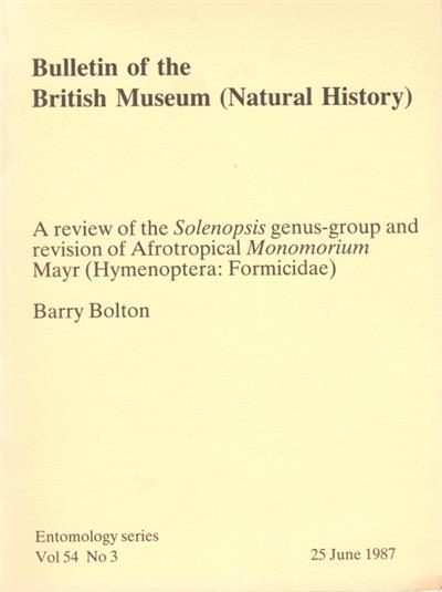 - Series : Bulletin of The Natural History Museum: Entomology