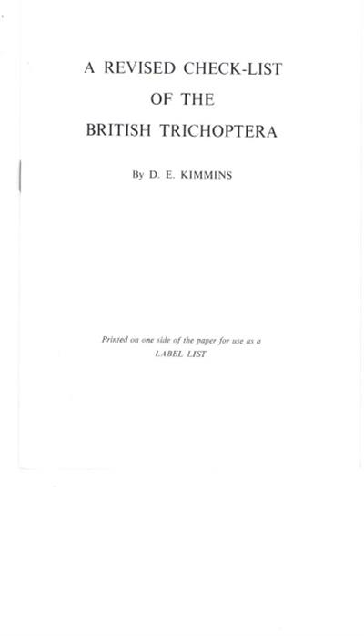 The Adult Trichoptera (caddisflies) (Handbooks for the Identification of
