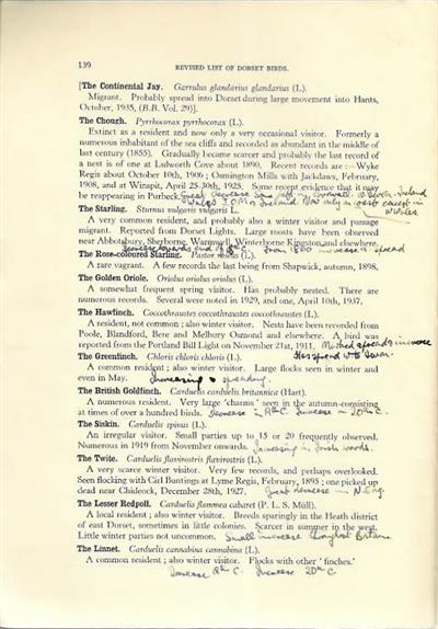 A Revised list of the Birds of Dorset