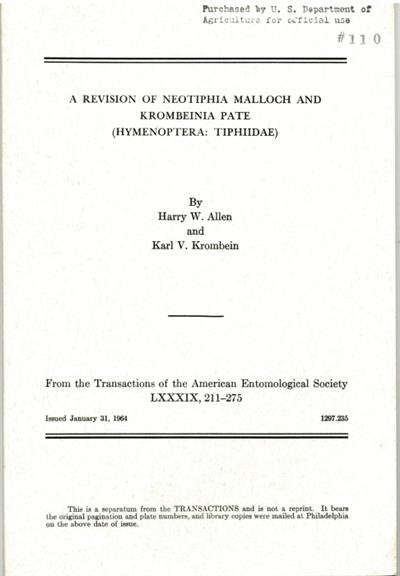 A Revision of Neotiphia Malloch and Krombeinia Pate (Hymenoptera: Tiphidae)