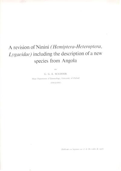 A Revision of Ninini (Hemiptera-Heteroptera, Lygaeidae) including the Description of a New Species from Angola