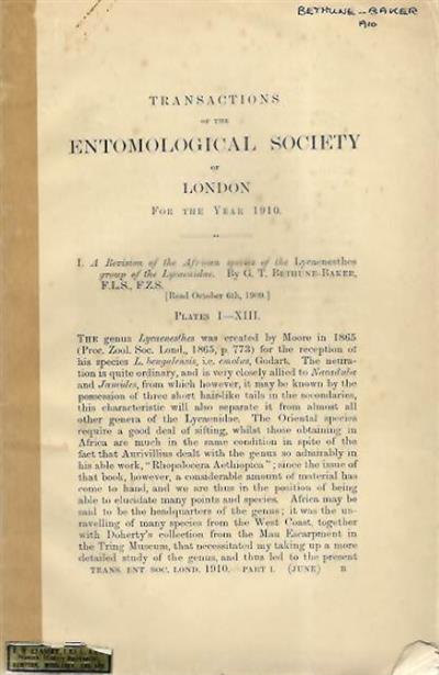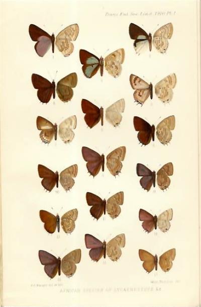 Transactions of the Entomological Society of London 1910. Chromolithographic plates by E.C. Knight, printed by West, Newman.