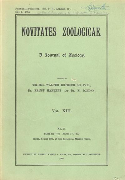 Facsimile edition (edited by P.H. Arnaud), first 1906, Novitates Zoologicae Vol. XIII, No. 3: 411-752