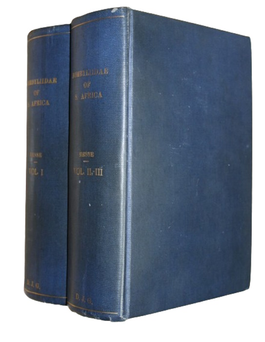 From Annals of the South African Museum XXXIV, XXXV (Pt 1+2). Rare. Albert John Hesse (1895-1987) was a South African entomologist. He was a curator at the South African Museum for fifty one years. Hesse worked primarily on Bombyliidae and Mydidae. The current work comprises his monumental revision of the Bombyliidae of southern Africa.
