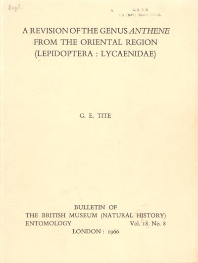 A Revision of the Genus Anthene from the Oriental Region (Lepidoptera: Lycaenidae)