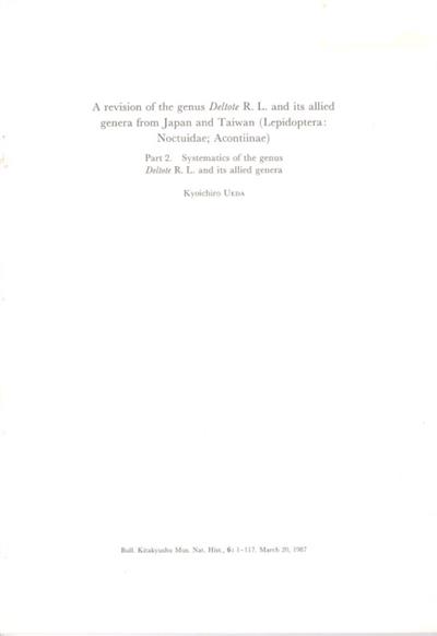 A Revision of the Genus Deltote R.L. and its Allied Genera from Japan and Taiwan (Lepidoptera: Noctuidae; Acontiinae). Pt. 2: Systematics of the Genus Deltote R.L. and its allied genera