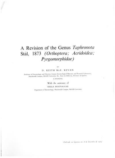A Revision of the Genus Taphronota Stal, 1873 (Orthoptera; Acridoidea; Pyrgomorphidae)