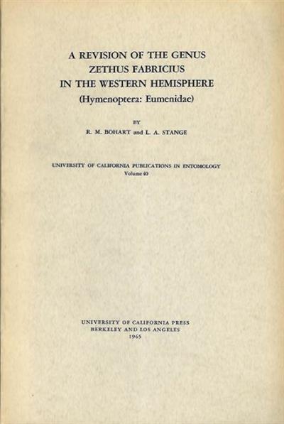 A Revision of the Genus Zethus Fabricus in the Western Hemisphere (Hymenoptera: Eumenidae)