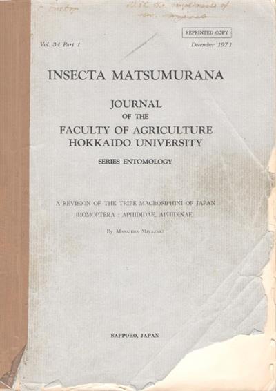 Reprinted from Insecta Matsumurana, Journal of the Faculty of Agriculture Hokkaido University - Series Ent., 34(1)