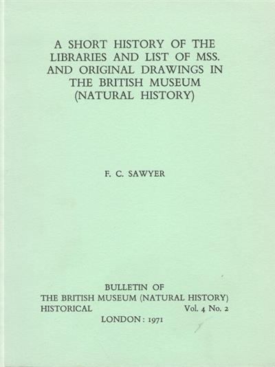 A Short History of the Libraries and List of Manuscripts and Original Drawings in the British Museum (Natural History)