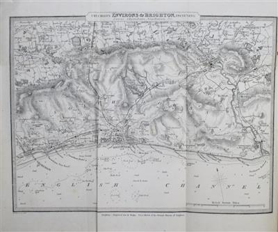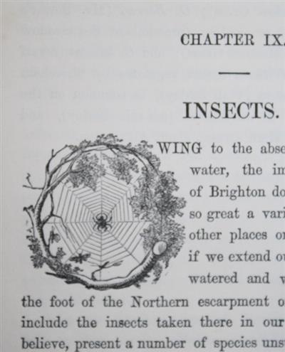 Charming engraved drop capitals to start of each chapter. The engraved map (dated 1858, ‘Engraved for H. Wallis. For A Sketch of the Natural History of Brighton’) is titled ‘Cruchley’s Environs of Brighton, including Lewes, Shoreham, Newhaven etc.’