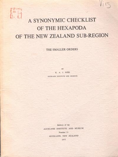 A Synonymic Checklist of the Hexapoda of the New Zealand Sub-Region: The Smaller Orders