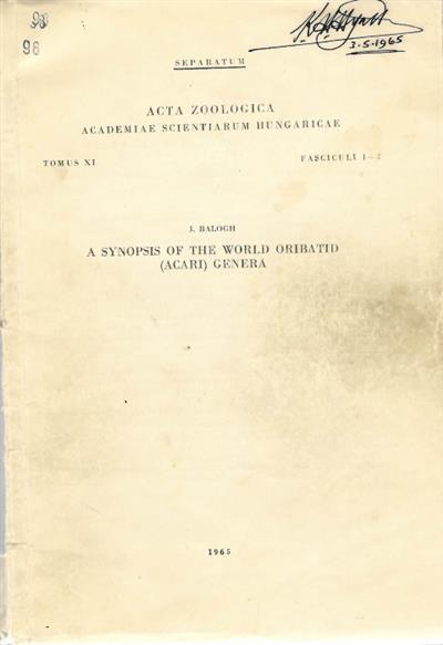 Text English. Acta Zoologica Academiae Scientiarum Hungaricae Vol XI (1-2).