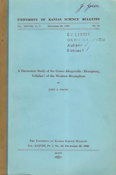 8vo, orig. wrappers, tape repair to spine. Vg. Ownership stamp of the British hemipterist Dennis Leston (1917-1981). From the library of Prof. J. Green (1928-2016) with his name to front cover.