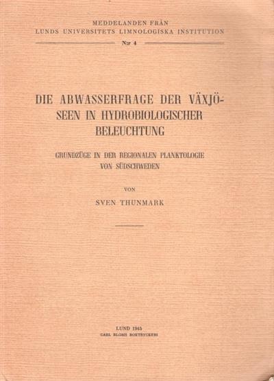 Abwasserfrage der Växjöseen in hydrobiologischer Beleuchtung: Grundzüge in der regionalen Planktologie von Südschweden