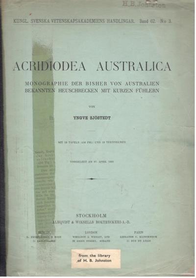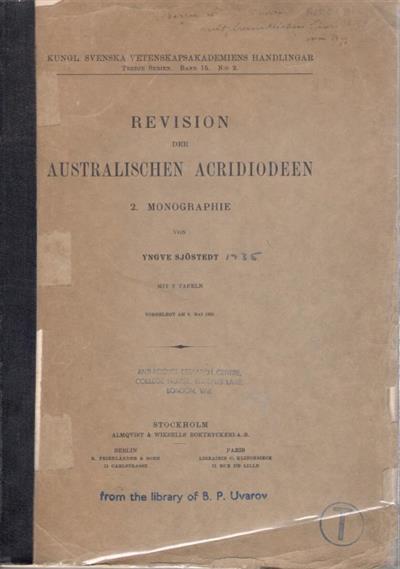 Acridiodea Australica Monographie: Monographie der bisher von Australien bekannten Heuschrecken mit kurzen Fühlern / Revision der Australischen Acridiodeen 2. Monographie