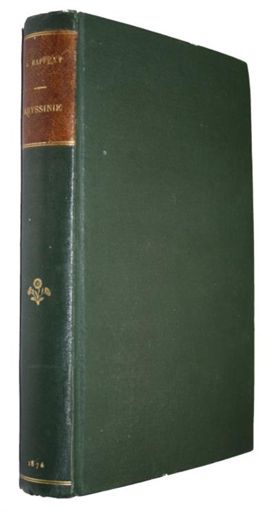 First edition. Text French. Achille Raffray (1844-1923), a French diplomat and entomologist. He led a mission to East Africa from 1873 to 1875, on behalf of the French Ministry of Education. Traveling with the Consul de Sarzec, he explored Lake Tana, and visited the Abyssinian city of Gondar, and the towns, lalibala and Adwa. During the expedition he encountered Yohannes IV Emperor of Abyssinia.