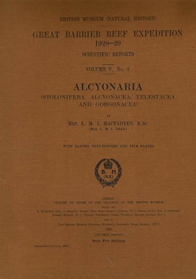 Alcyonaria (Stolonifera. Alcyonacea, Telestacea and Gorgonacea) Great Barrier Reef Expedition 1928-29. Scientific Reports. Vol. V, No. 2